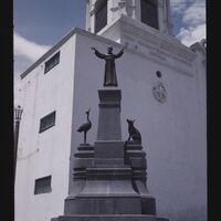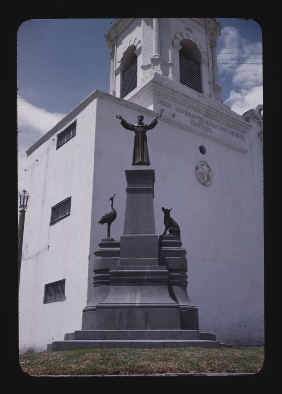 - EN Church of San Francisco, detail of modern sculpture of Saint Francis. Original Foundation of the church, 1552; rebuilt after 1687; modernized 1871.