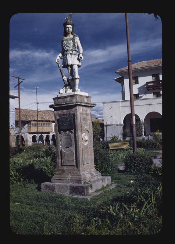 - EN Plaza de Regocijos. Sculpture in the center of the plaza representing the famous first Inca Manco-Capac.