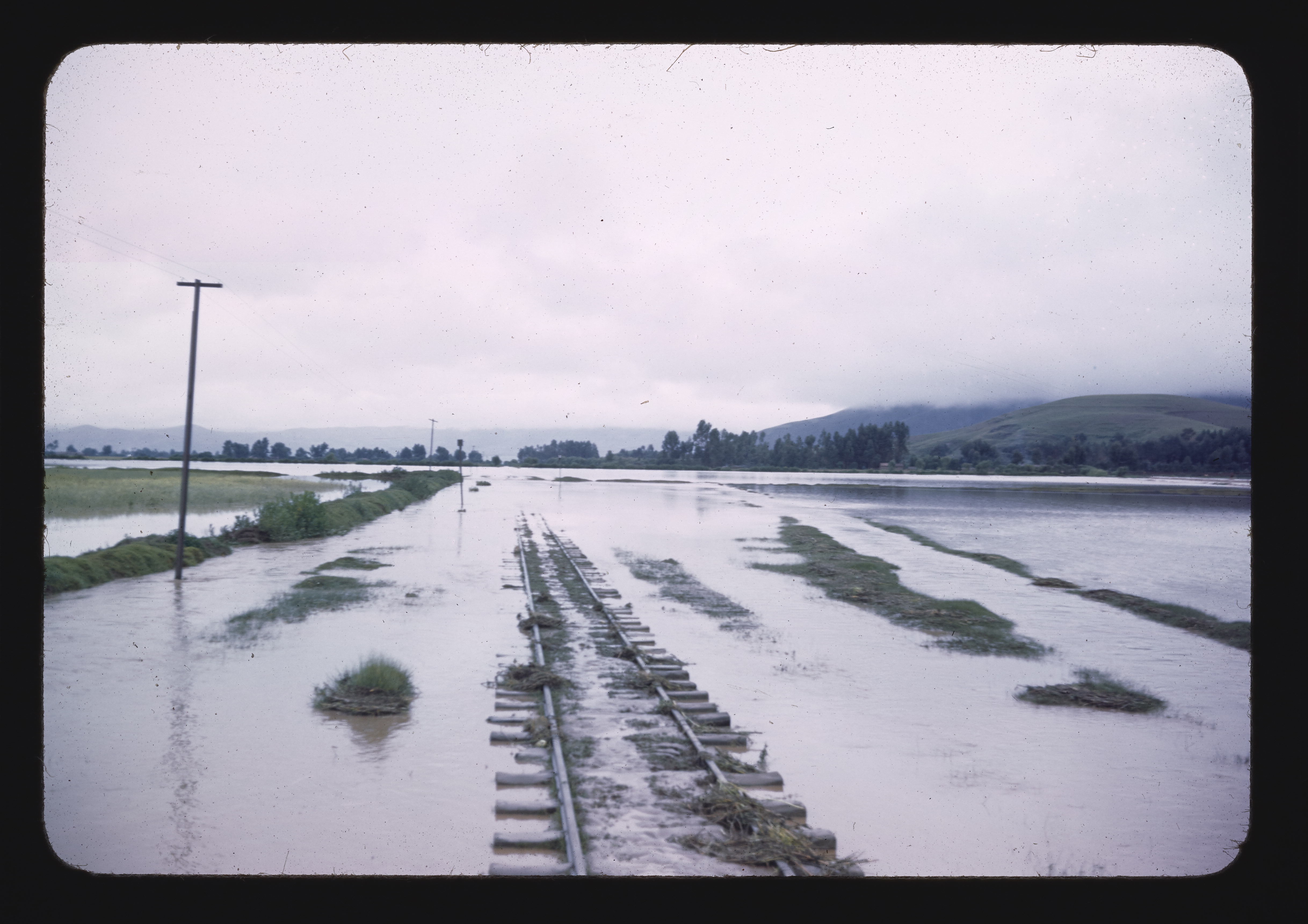 - EN floods (natural events), hills (landforms), trees (woody plants), tracks (transit system elements), clouds