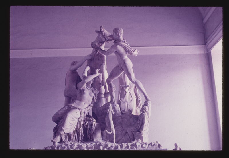 - EN sculpture (visual works), marble (rock), nudes (representations), bulls (animals)