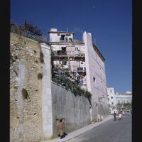 - ES edificios, componentes de ventana, balcones, personas anónimas, teja, calles