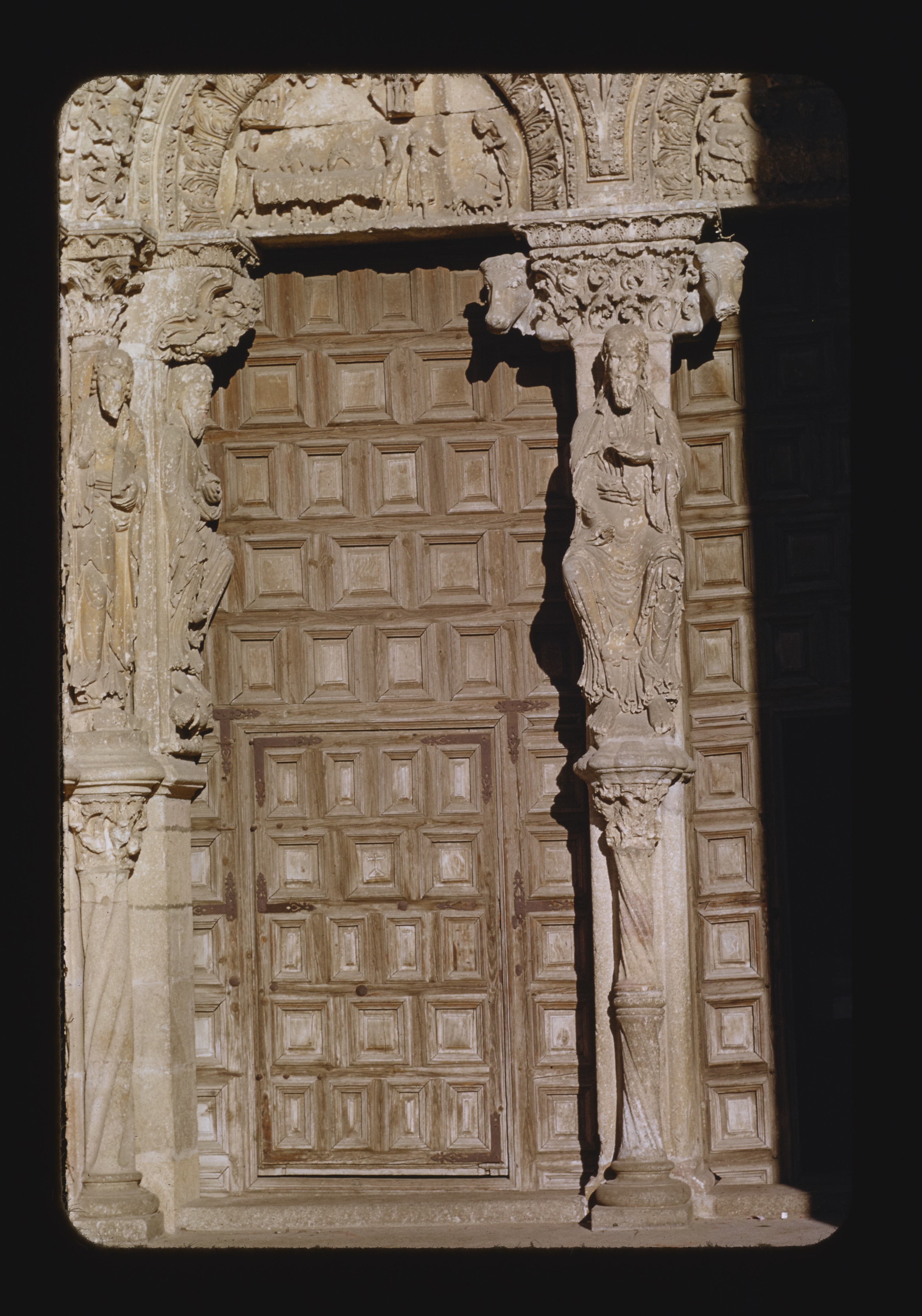- EN Avila Basilica San Vicente West facade Portal Archivolt Engaged statues Left door Tympanum Trumeau