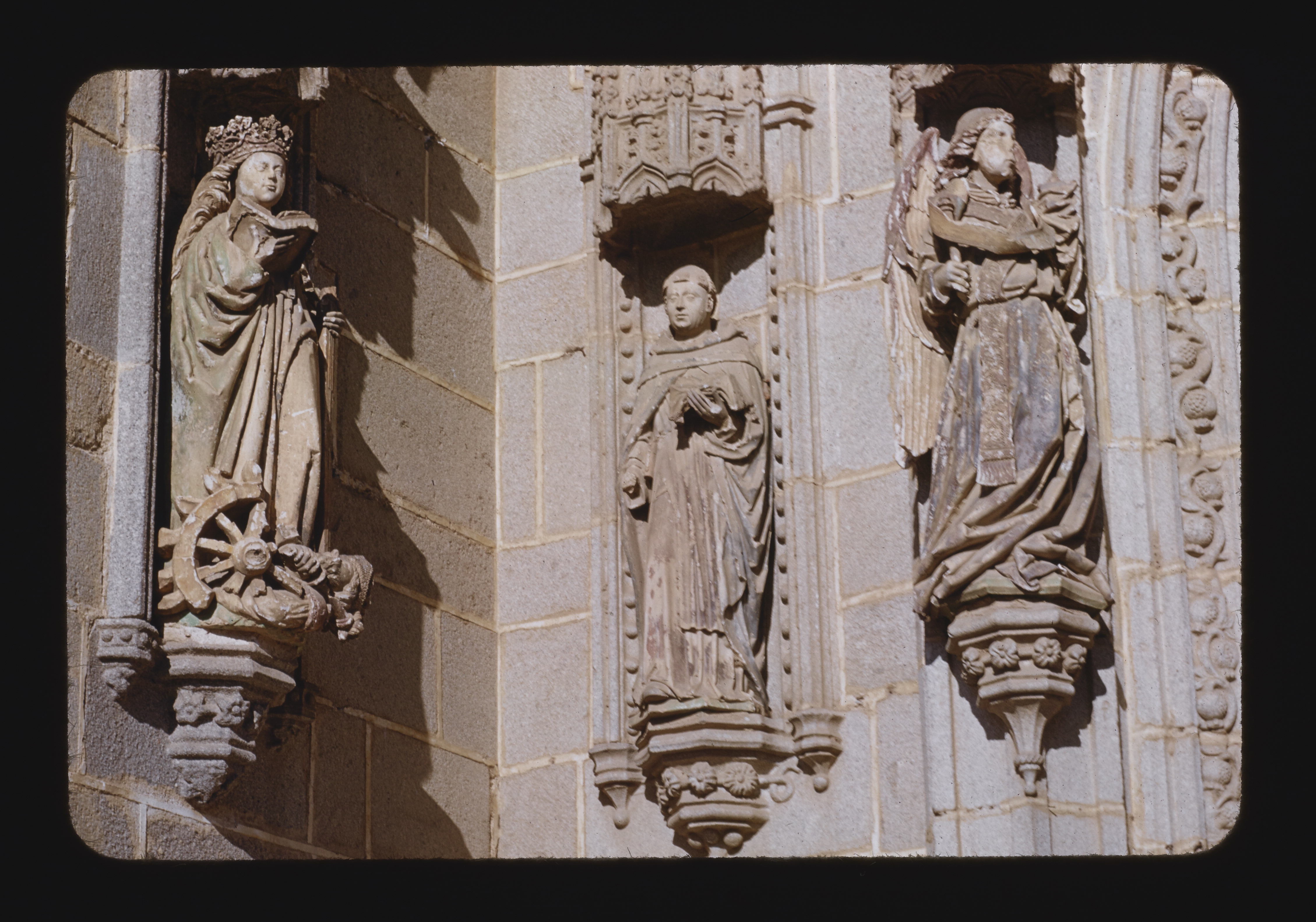 - EN Avila Santo Tomas 1482-1493 by Martin de Solorzano Main facade Main portal Engaged statues Left - St. Catharine Center - Dominican Saint Right - Angel Sculpture by Gilberto de Siloe and Diego de la Cruz
