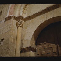 - EN Segovia Church of San Martin 12th Century Church of San Juan de los Caballeros Main portal Partial view Column Capital String course