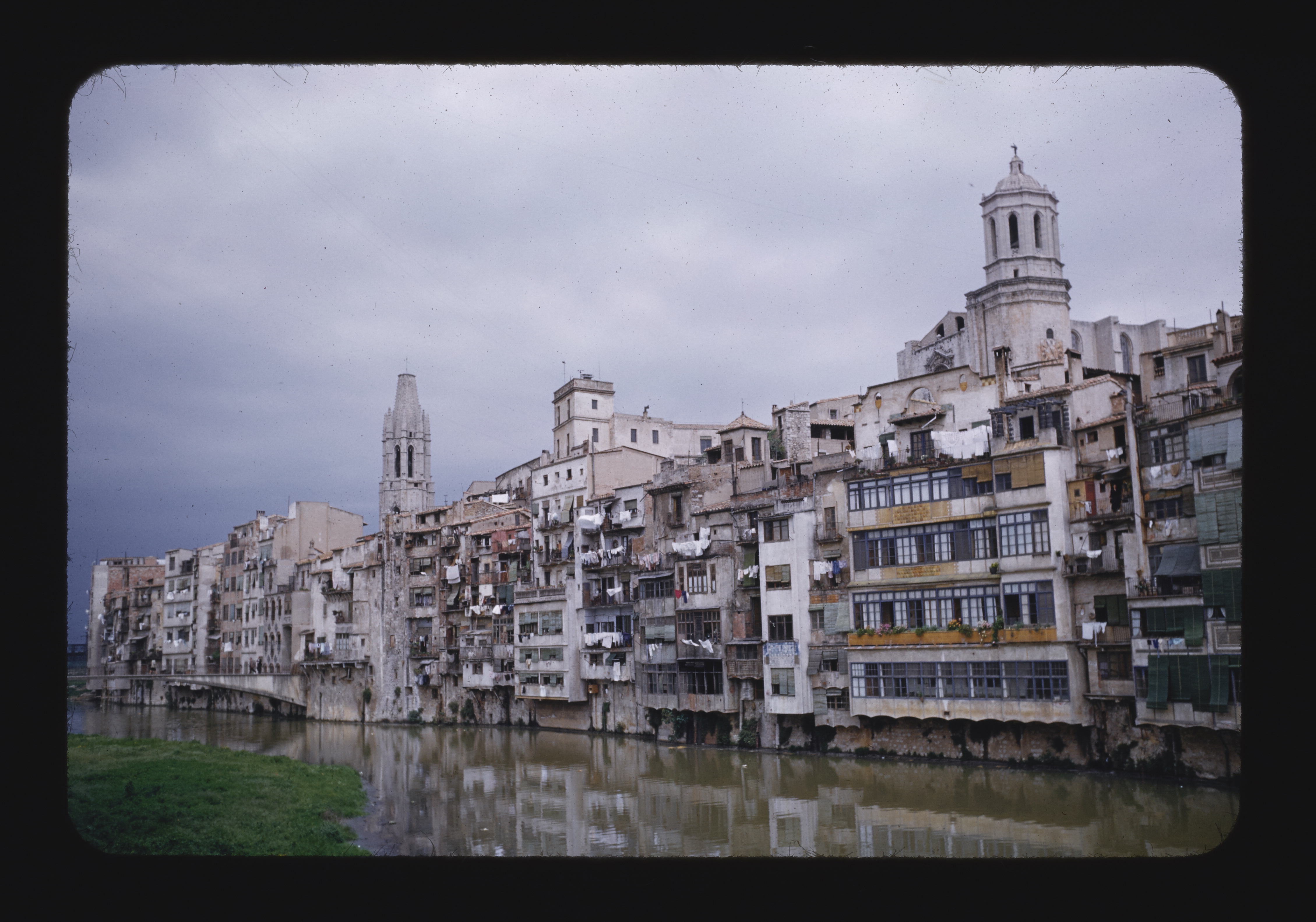 - EN Gerona River Onar Left - Spire of San Feliu 1245 Right - Tower of cathedral 1581