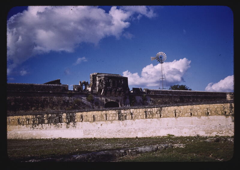- EN Mexico Campeche Spanish fort General view Windmill on right
