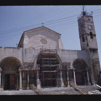 - EN churches (buildings), archivolts, portals, bell tower, corinthian columns, entablatures, architectural molding, scaffolding, cross (visual work)