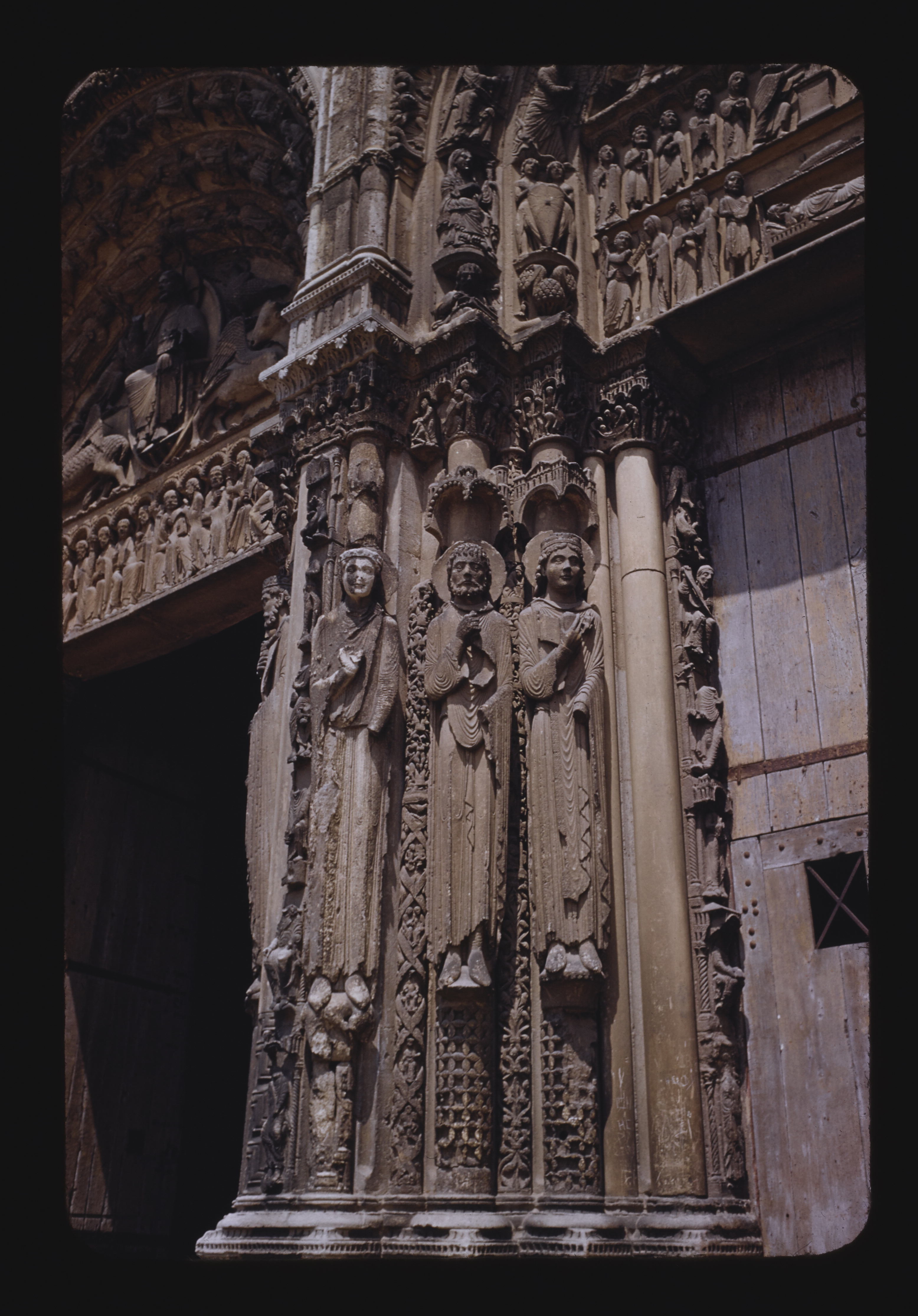 - EN Chartres Cathedral - west facade right door lintel columnar figure