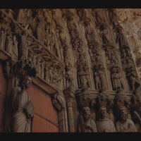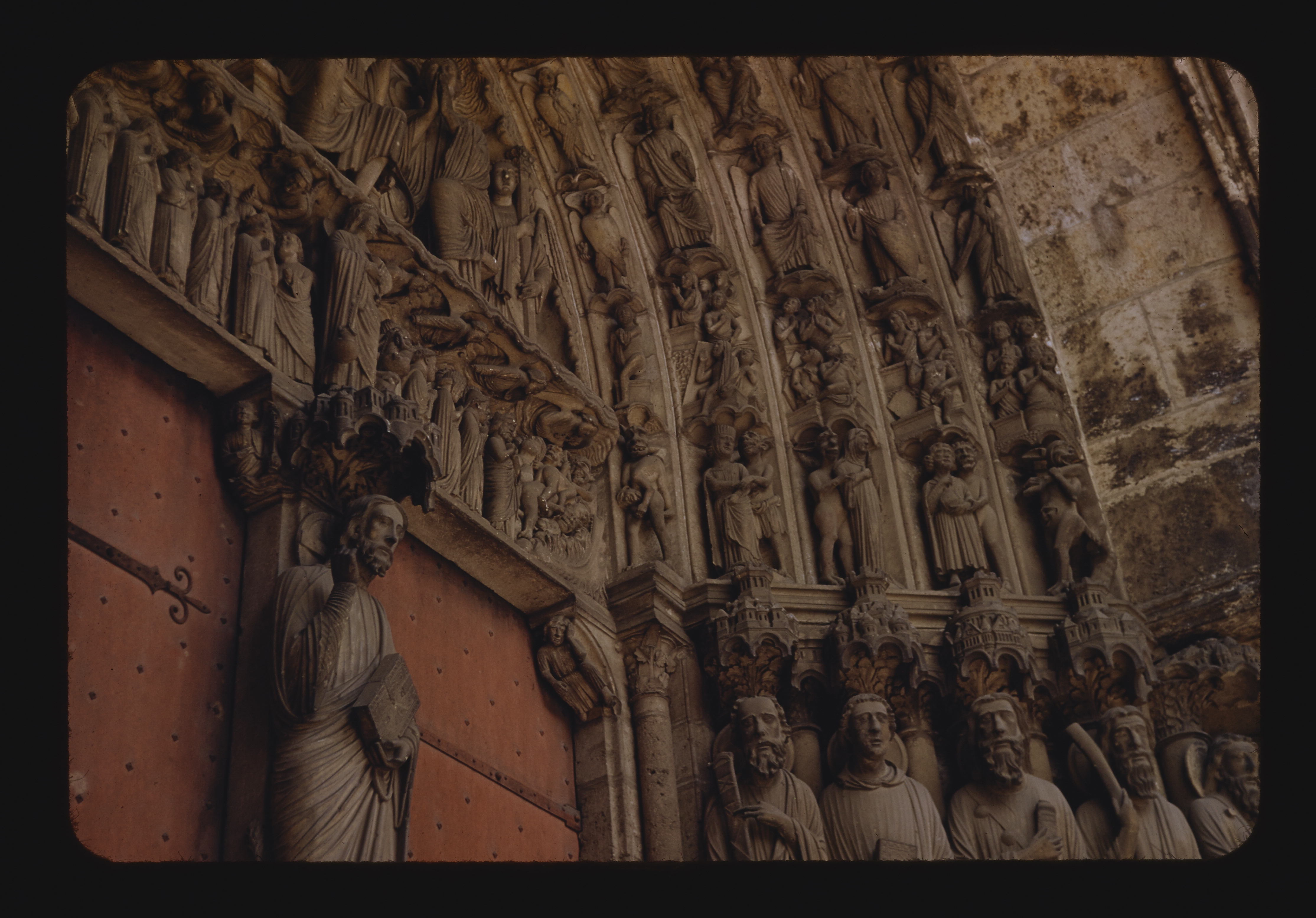 - EN churches (buildings), religious figure, trumeau (doorway component), bas-relief (sculpture), double door, jamb figure, archivolts, lintels (spanning elements),tympana (wall components)