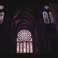 - EN churches (buildings), lancet windows, rose window, stained glass (visual works), groined vaults