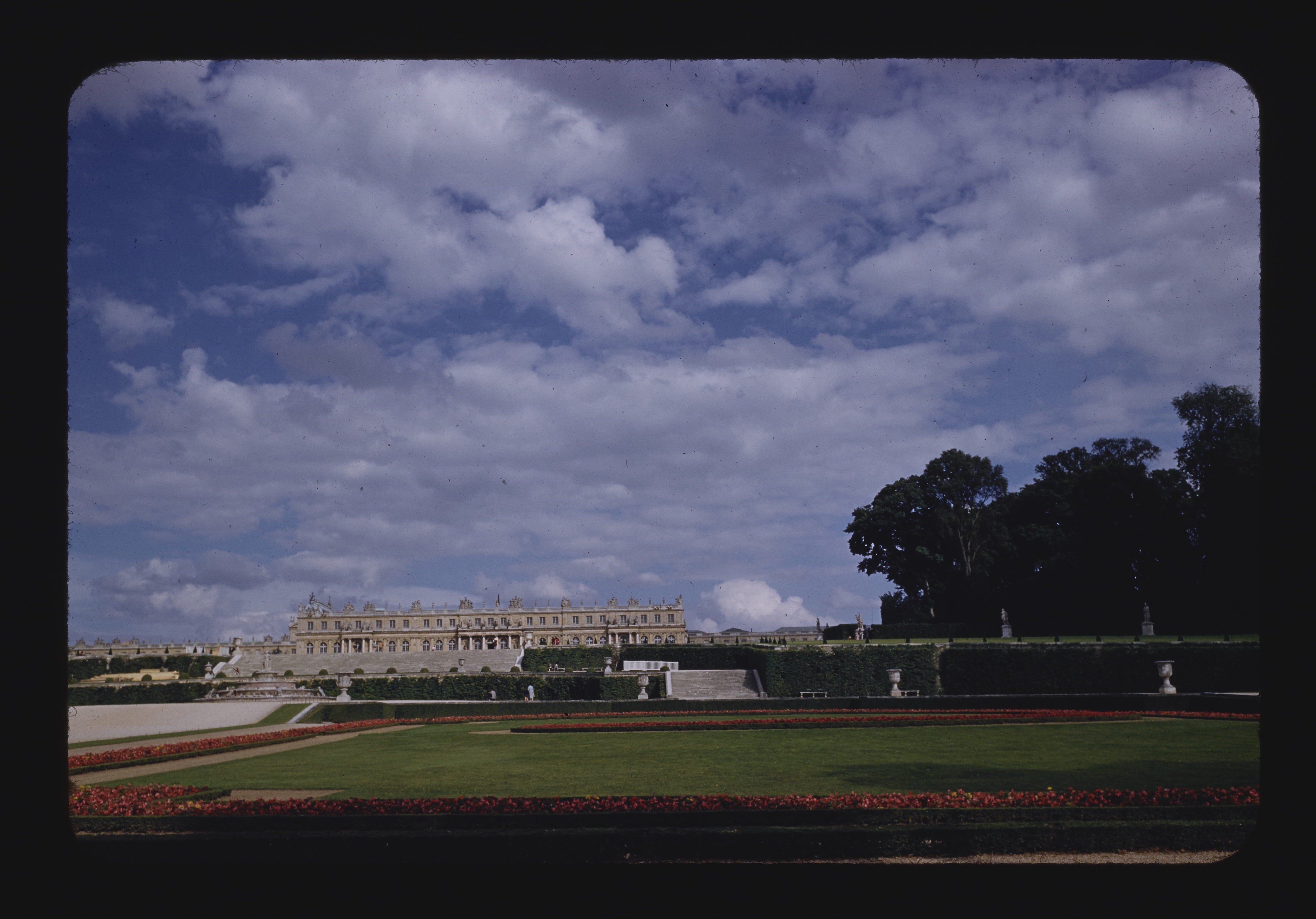 - EN French gardens, canopy trees, royal palace