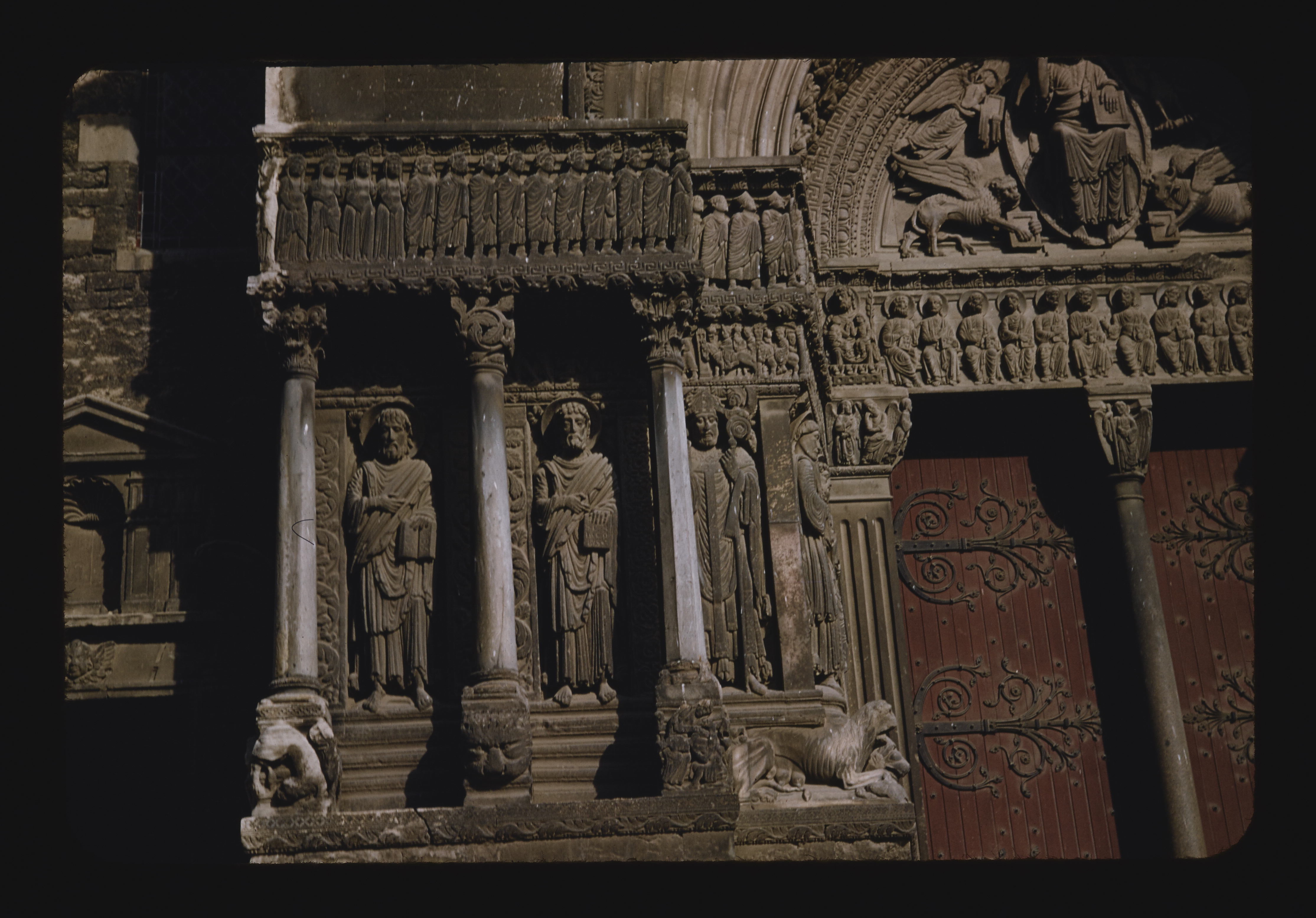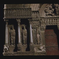 - EN church (building), jamb figures, lintel (spanning element), bas-relief (Sculpture technique), tympana (wall components), trumeau (doorway component), architectural molding
