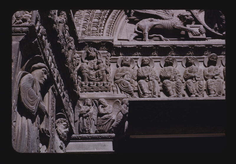 - EN church (building), bas-relief (Sculpture technique), architectural molding, lintel (spanning element), tympana (wall components), jamb figure