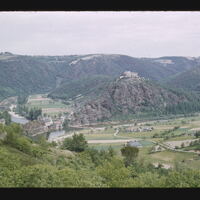- EN hills (landforms), trees (woody plants), Plantae (kingdom), streets, buildings (structures), grasses (plants), streams