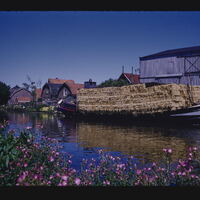 - EN barges (flat-bottomed watercraft), canals (waterways), plants (living organisms), buildings (structures), windows, roofs