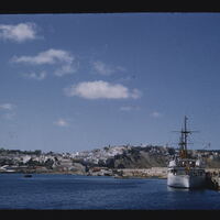 - EN sea, harbor view, ship, mountain range, automobiles,