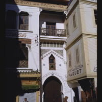 - EN buildings (structures), horseshoe arch, balconies, window components, anonymous people