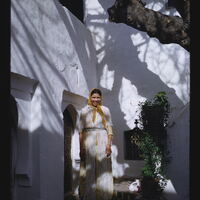 - EN woman (female human), folk costume, horseshoe arches