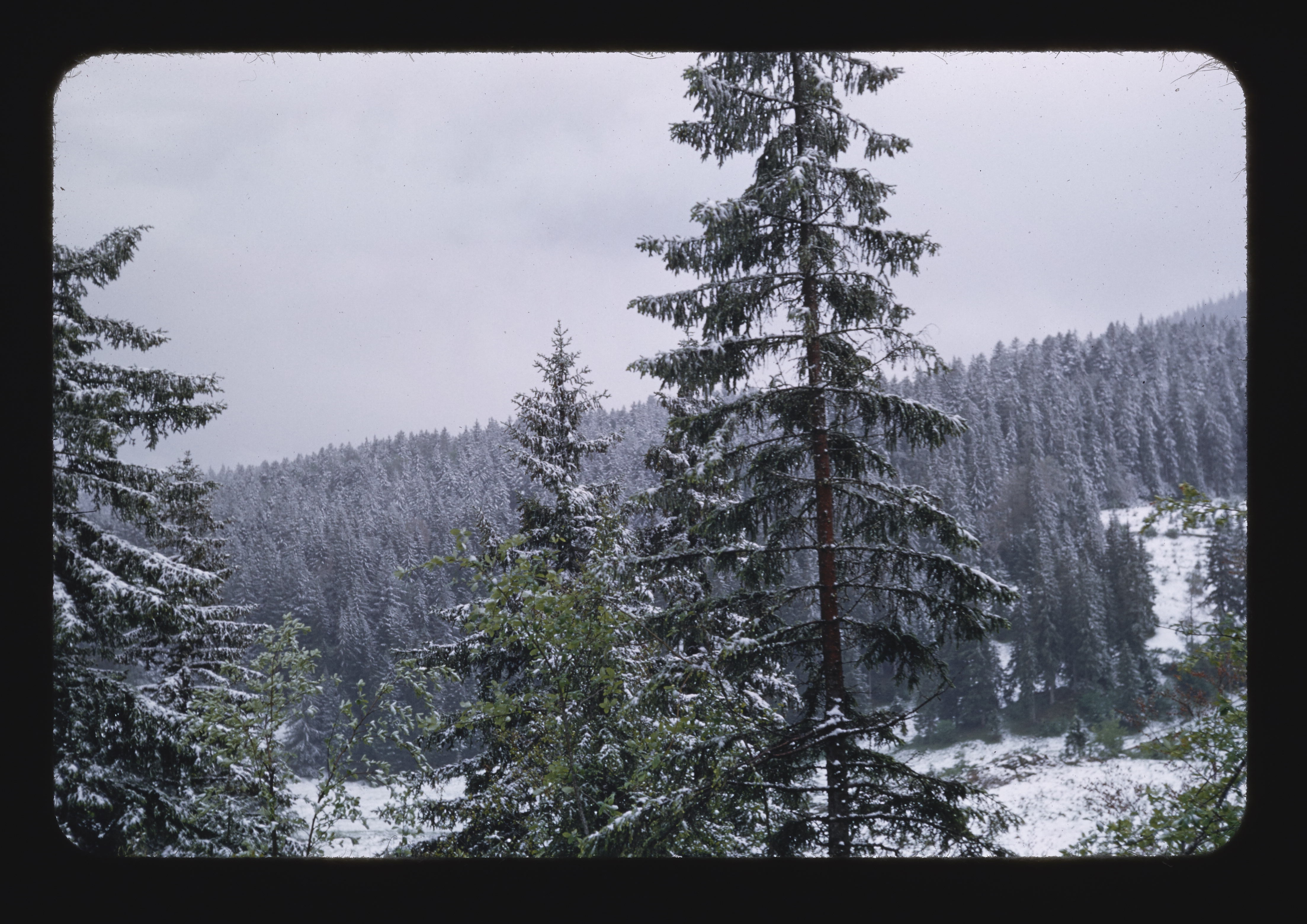 - EN snow (precipitation), trees (woody plants), mountain range, pine (genus)