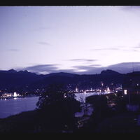 - EN city, mountain range, dusk