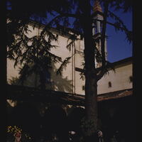 - EN courtyard, tree, church (building), bell tower, roof tiles