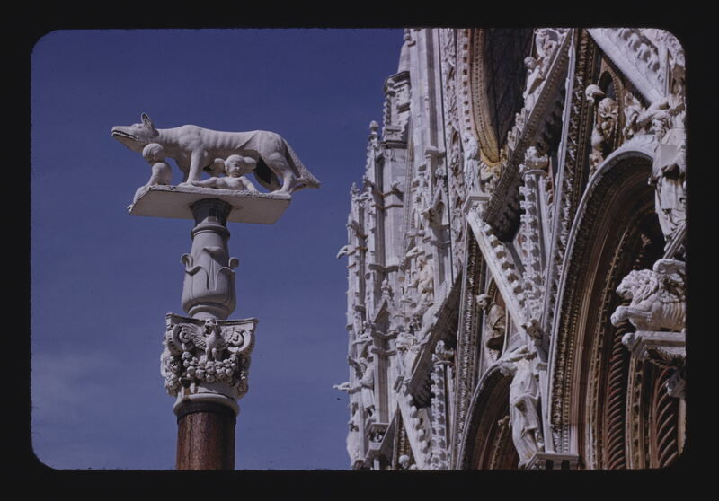 - EN Italy Siena Cathedral Main facade Partial view Sculpture She-wolf and twins Arms of Siena