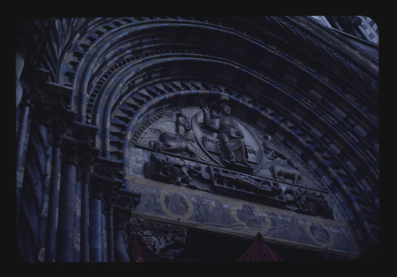 - EN Genoa Cathedral of San Lorenzo Main portal Tympanum Archivolt