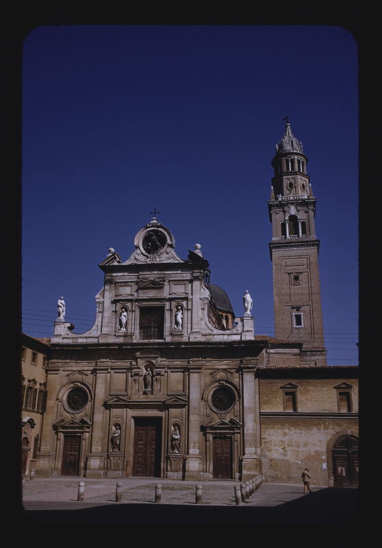 - EN Parma Cathedral Romanesque Begun second half of 11th Century Completely rebuilt 12th Century Church of S. Giovanni, Evangelista 1510 by B. Zaccagni Facade 1607 Campanile 1607