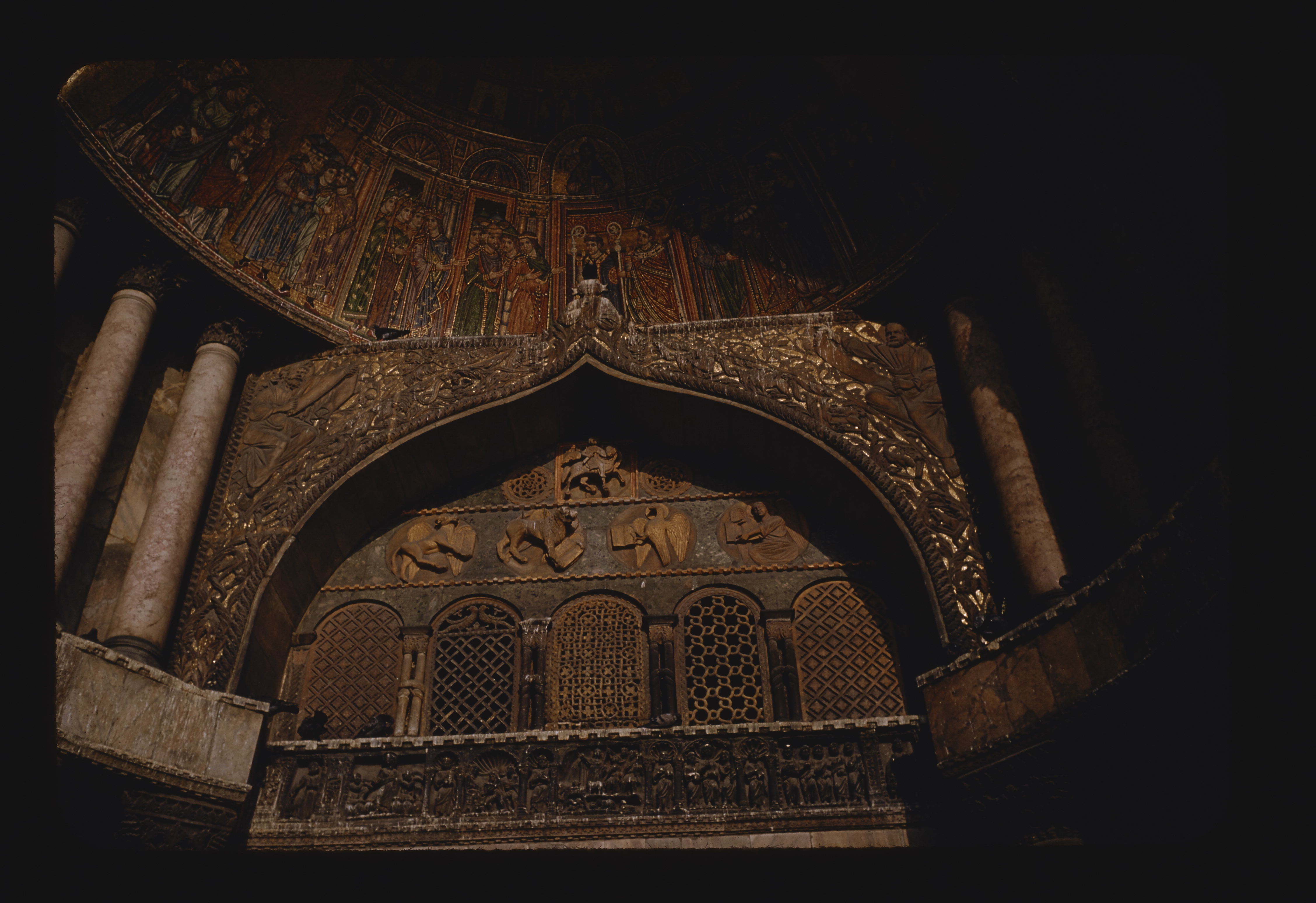- EN basilicas (works by context), façades, mosaics (visual works), religious figures, architectural sculpture, tympana (wall components), portals