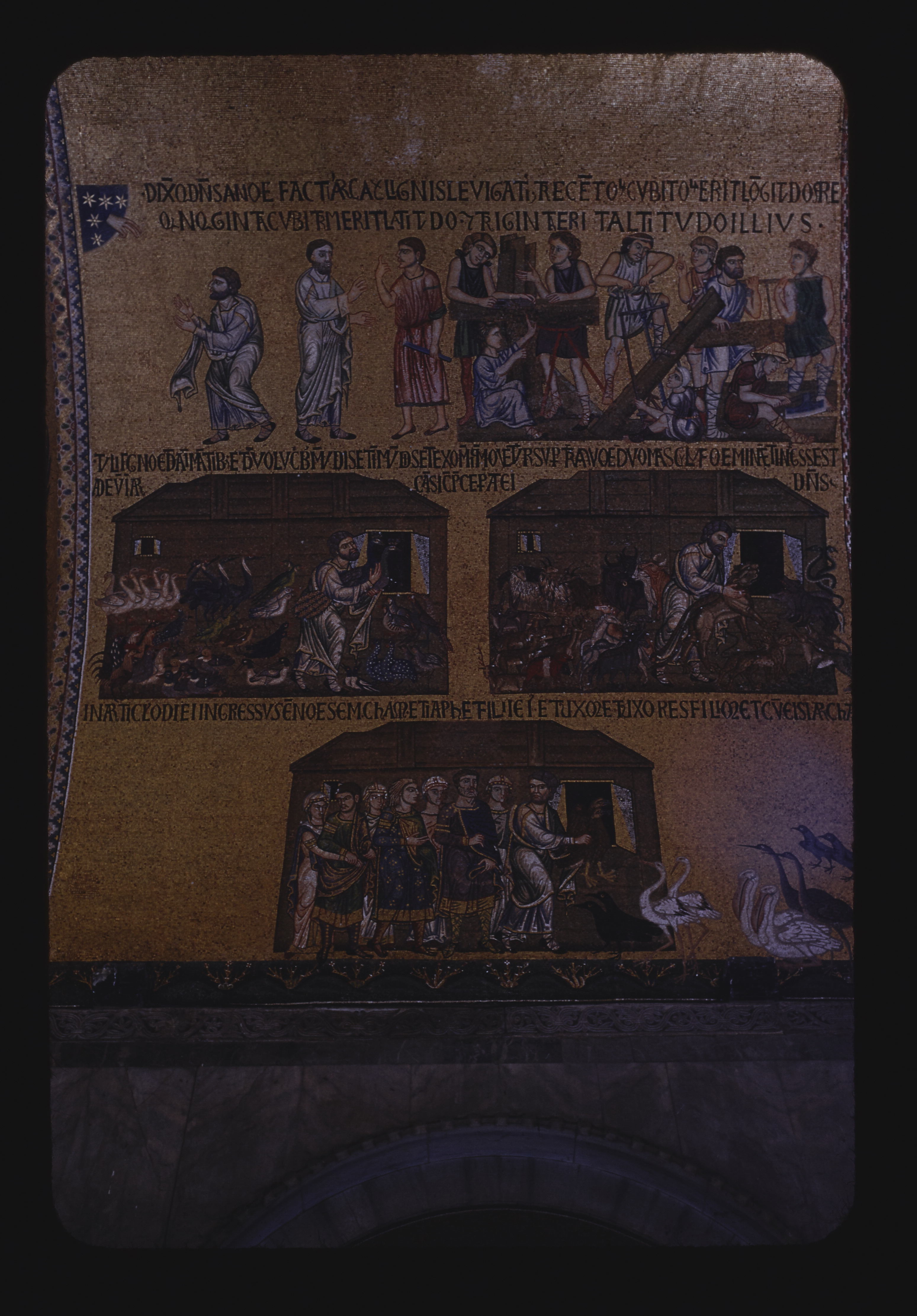 - EN Venice City Basilica of San Marcos Interior Atrium Mosaic Noah The Ark and the Flood Detail Building and Loading the Ark