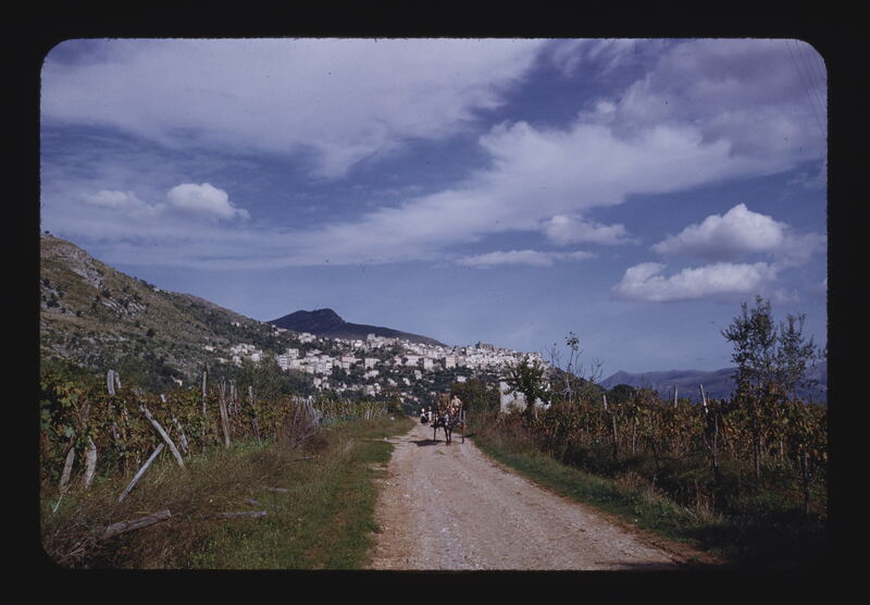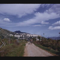 - EN towns, townscapes (representations), dirt roads, vegetation, pedestrians