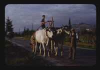 Roadside scene Oxen and cart