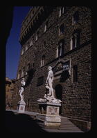Palazzo Vecchio - Facade - Lower section Florence Palazzo Vecchio Facade Lower section Sculpture Copy of Michelangelo's "David" "Hercules and Cacus" by Baccio Bandinelli On perron Copy of Marzocco -