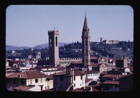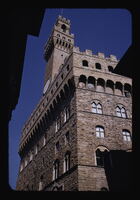 Palazzo della Signoria (Palazzo Vecchio) - View of tower from distance Florence Palazzo della Signoria (Palazzo Vecchio) 1298-1314 View of tower from distance architect: Arnolfo di Cambio -